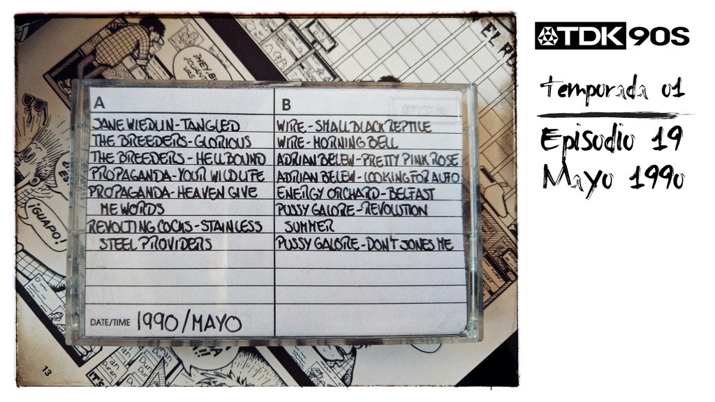En el episodio 19 terminamos de escuchar los discos editados en mayo de 1990. Suena Jane Wiedlin, la ex guitarrista de las Go-Go´s, la banda alemana Propaganda rearmándose para la nueva década, los Revolting Cocks siendo desagradablemente industriales y los arquitectos del post punk Wire. También suena Adrian Belew en pleno romance musical con Bowie, los irlandeses de Energy Orchard, la banda noise Pussy Galore y el disco debut de The Breeders, la banda de Kim Deal después de la implosión de los Pixies.