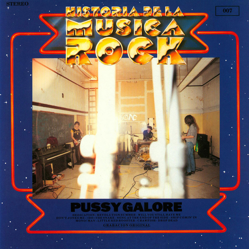 El tercer disco de la banda de noise americana Pussy Galore se llama Historia de la Música Rock, y no es una traducción. El disco se llama internacionalmente asi, no porque sea una compilación de canciones que recorren la historia de la música rock, sino porque asi se llamaban los compilados de rock publicados en España a principios de los 80s. Y cuando los muchachos de Pussy Galore se encontraron con uno de estos discos dijeron, aquí esta la papa. Aunque su sonido no esta bien representado en la historia del rock, porque provienen y se dirigen hacia el punk de garaje mas sucio de los 60s.