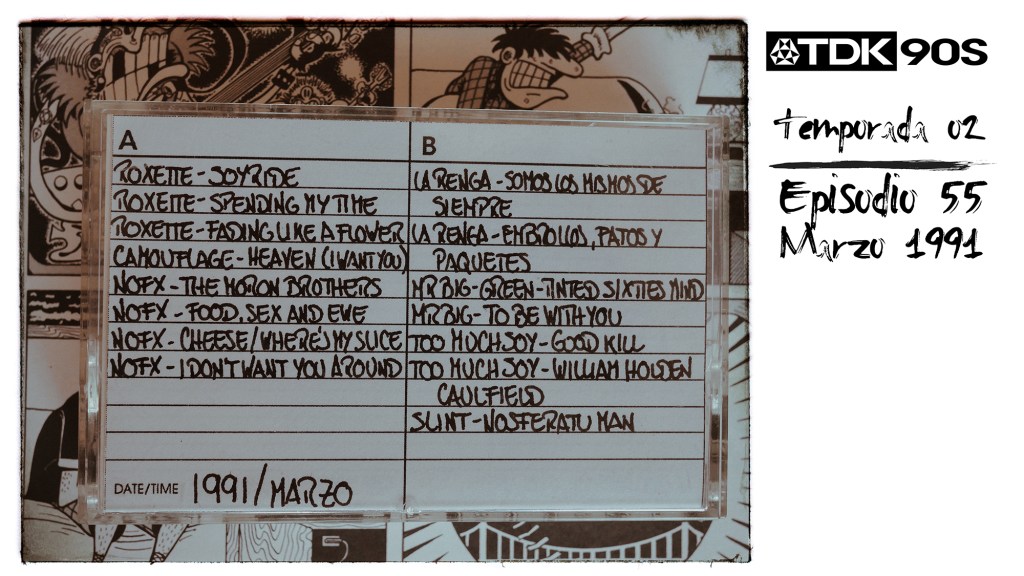 En el episodio 55 de TDK 90s terminamos de escuchar los discos editados en marzo de 1991. Suena el dúo sueco Roxette con el disco que en su momento se convirtió en el más vendido de la historia en Argentina, los californianos de NOFX con el disco que definió su sonido y La Renga con un disco lleno de futuros clásicos de sus shows en vivo. También escuchamos discos de Camouflage, Mr. Big, Too Much Joy y Slint.